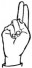 На ћирилици написано ЉУБИСЛАВ БРЕЗНИКАР састоји се из 17 слова [?]. Исписано ћириличном једноручном азбуком за глувонеме: